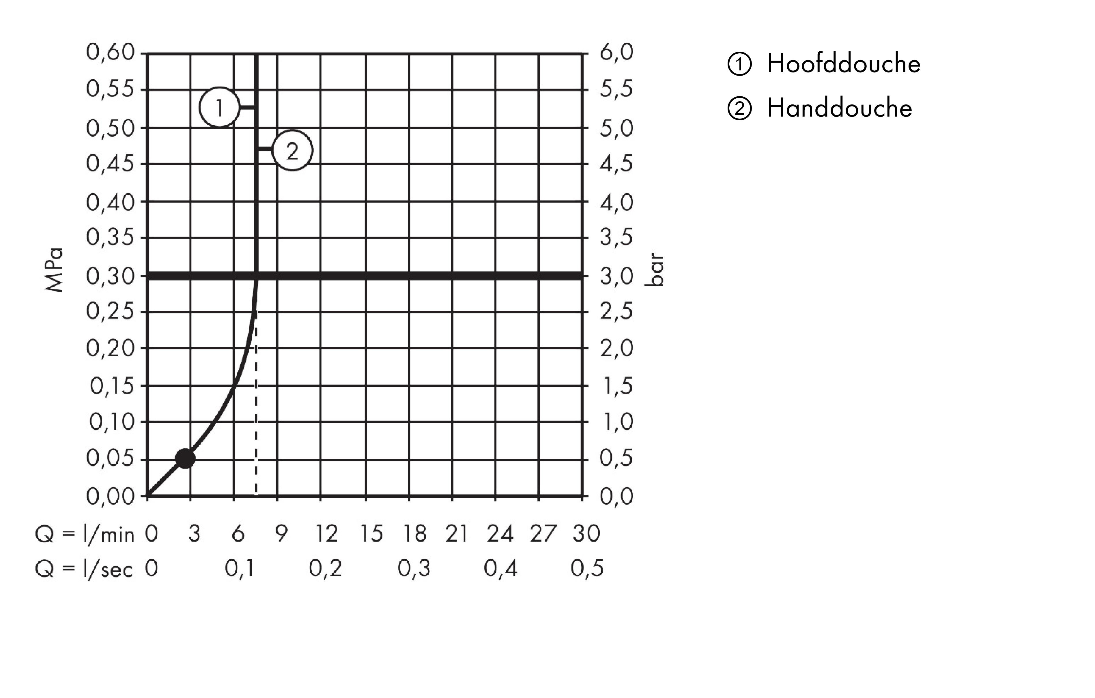 - maximaal debiet voor Showerpipe bij 3 bar: 8 l/min