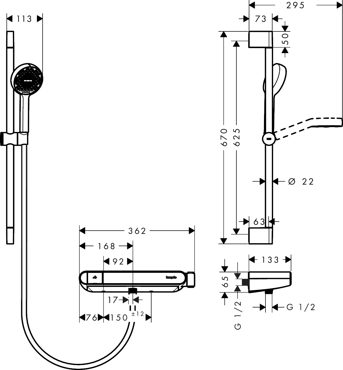- diameter douchestang: 22 mm